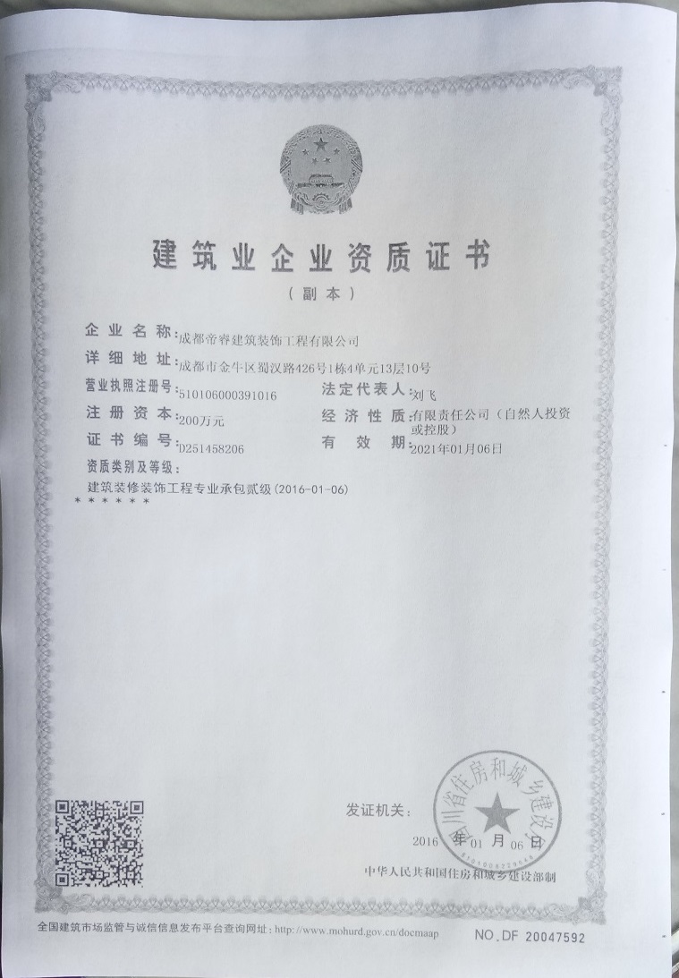 “帝睿装饰”是一支饱含激情的成都装修公司。公司拥有独立并且专业的工装雷火网页版和完善的工程管理机制。在适用性方面我们更多考虑的是商业盈利模式、文化背景、风格喜好、实用性等,并在这方面基础之上针对性的对不同空间做设计上的灵活运用,真正意义上做到尽善尽美;从施工作业和现场管理角度考虑,所有技术和管理人员持证上岗,确保所承接的工程全部都有序顺利开展。与此同时,帝睿装饰还另实行24小时跟踪服务机制,并承诺:“工程不转包!”。